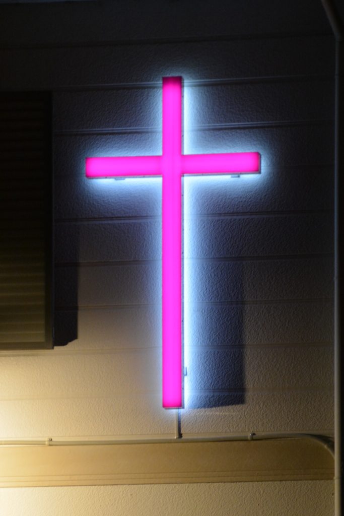 十字架にLEDを取付、アクリルカバーを被せます(カバー料金別途)。
