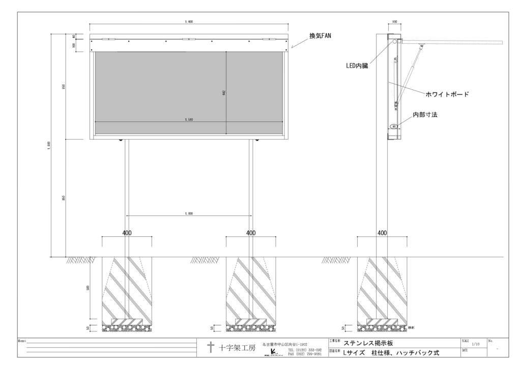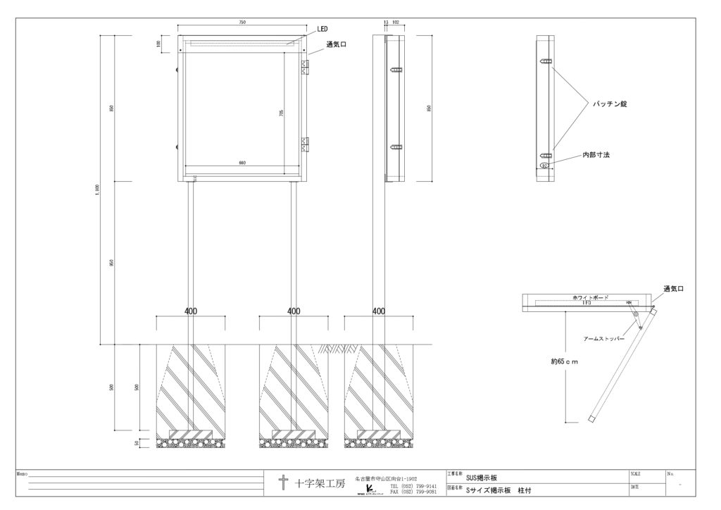 自立用ステンレス柱の根入りは、40cm以上としてください