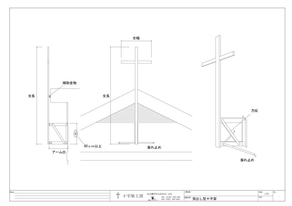 - 突き出しアームと十字架本体の合計金額(高さ(H)は十字架の全長で取付部分も含みます)。